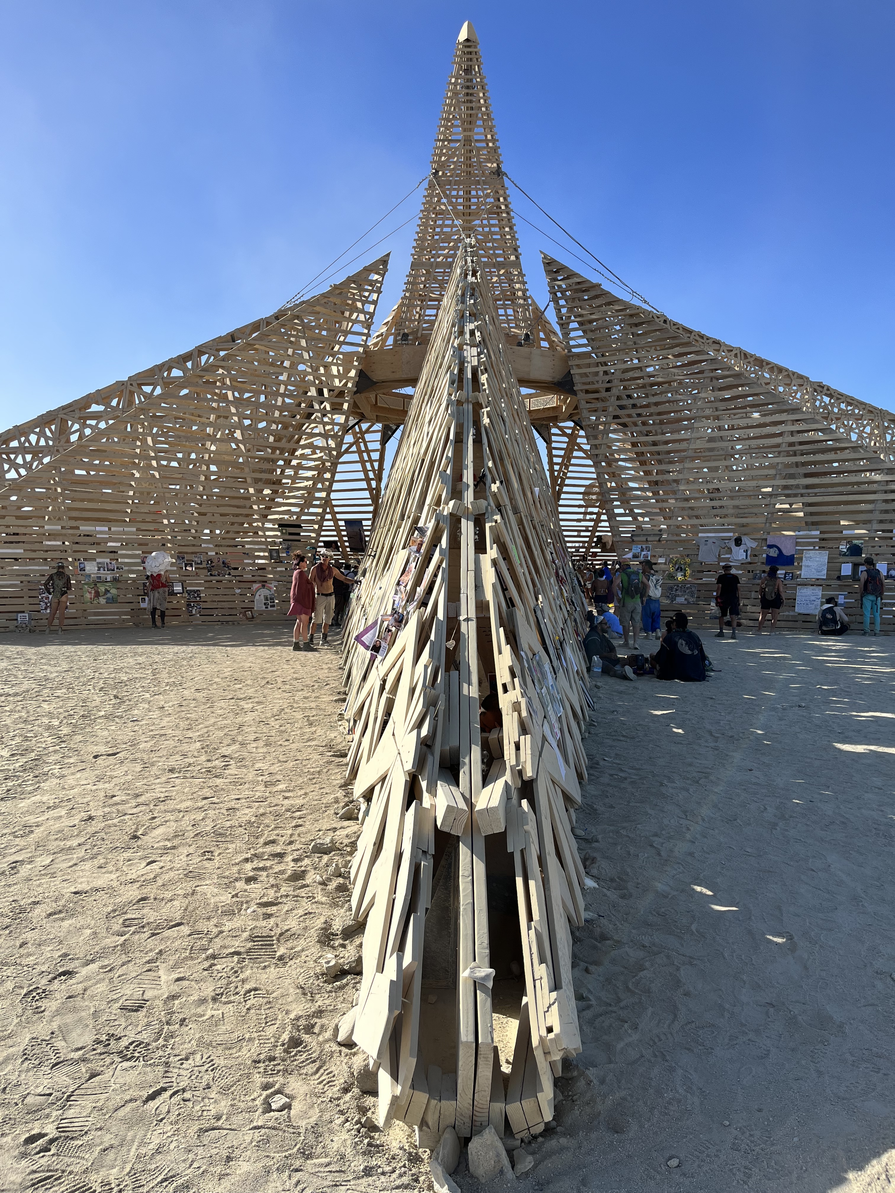 With that, I want to share one of my experiences at the Temple (see below for visual). The Power of the Temple at the burn is unlike any other sacred place I have ever ventured to in my life. I spent a couple hours contemplating forgiveness for my father before finally releasing the offerings I had brought for my sister and me. After, I took a seat in silence in the center of the Temple with ~ 20-30 others. A beautiful young woman with soft eyes and a nice smile was next to me, at first crying when I sat down and dropped into a meditation/prayer. When I came out of it, she seemed to be sleeping. I’m not quite sure how much time passed since the desert has a way of eviscerating all concepts of “time” and only a few have a phone or watch readily available, but it was at least a couple hours start to finish. I focused on releasing the residual anger and resentment towards my father. Anyway, we both stood up at the exact same time and as she stood up, she fumbled a bunch of index cards…I started helping her pick them up and gave her a handful, only to see one line which read “Dad, I forgive you.”