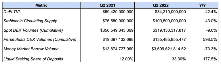- Spot DEX volumes declined 31.6% from $281.68B to $192.73B This tracks the total trading volumes across decentralized spot exchanges deployed on Ethereum. This decline is likely attributed to slumping market conditions. As discussed above, bearish conditions have diminished demand to speculate, which given that trading activity is positively correlated to price action, has led to lower trading volumes.