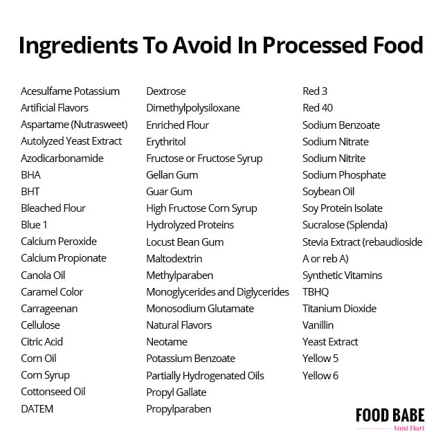 Here are some one page charts I found helpful. You can print and pin on your fridge if you really want to try and root out as many processed and bad ingredients as possible.